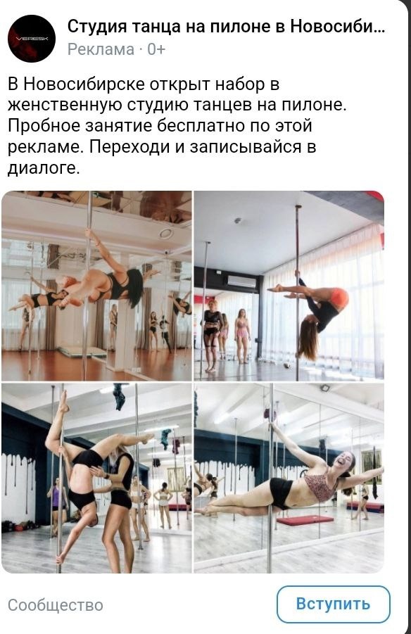 Делюсь новым кейсом по продвижению школы танцев на пилоне в Ваче